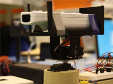 A processing based app running on the host interprets the co-ordinates of the sources (averaging them to a singular point if needed) and analyses its position relative to the centre of the camera. Communicating via serial to an Arduino board instructions are sent to manipulate two continuously rotating servos which adjust at varying speeds to centre the point in an almost real time manner.